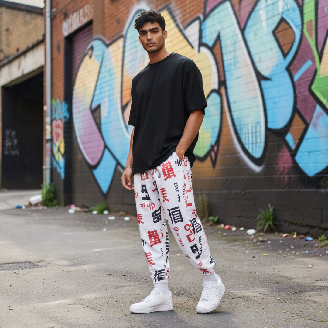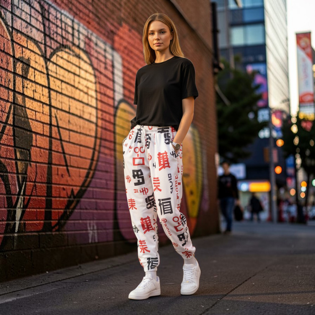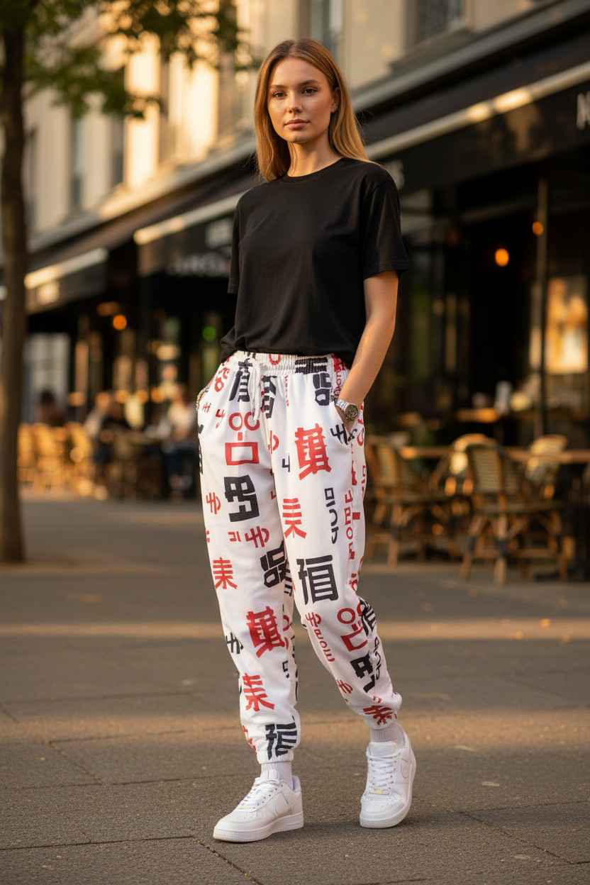 Rahat ve şık tasarımıyla günlük kullanıma mükemmel olan bu unisex jogger pantolon, japon yazı baskısıyla benzersiz bir görünüm sunuyor. Yumuşak kumaşı ve esnek yapısı, hareket özgürlüğü sağlarken tüm gün konfor garantisi veriyor. Cepli tasarımı pratiklik ekliyor, modern kesimi ise her yaştan kişiye uygun. Casual kombinasyonlardan spor stiline kadar birçok outfite kolayca uyum sağlayan bu pantolon, gardırobunuzun vazgeçilmez parçası olacak.