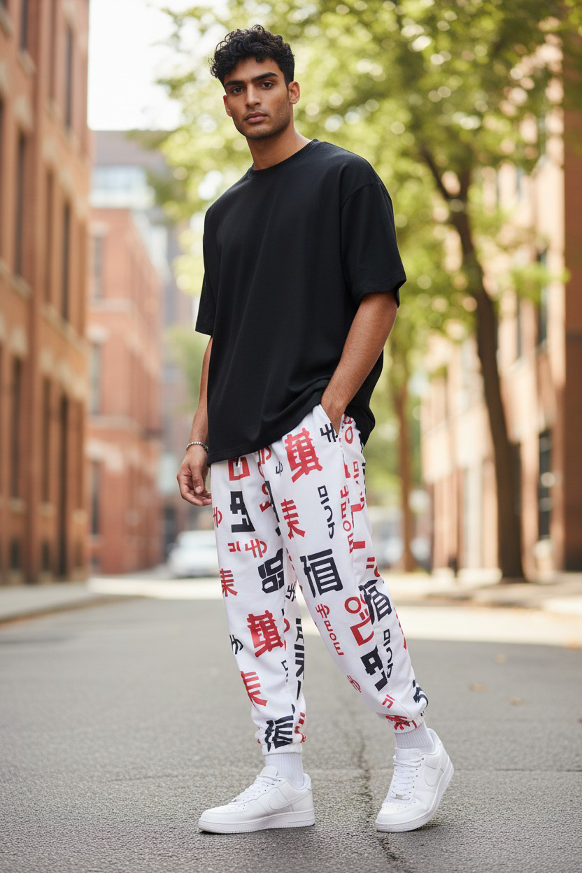Gangown Unisex Japon Yazı Baskılı Jogger Pantolon