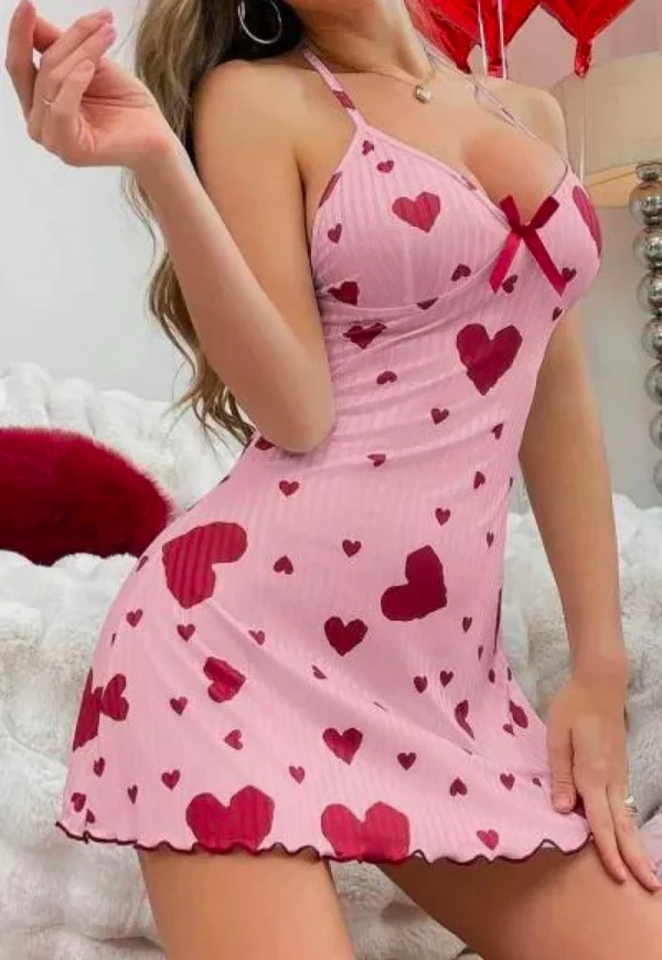 Romantik ve şık tasarımıyla öne çıkan pembe kırmızı kalp desenli geceliğimiz, özel gecelerinize renk katacak. Yumuşak ve nefes alabilen kumaşı sayesinde tüm gece konforlu bir uyku deneyimi sunar.