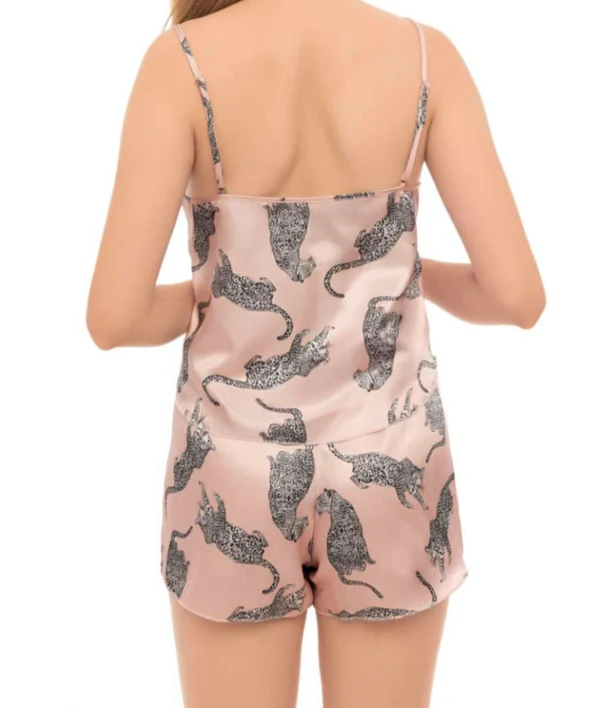 İnce askılı, dökümlü üst tasarımı feminen bir siluet sunarken; beli lastikli ve kurdele detaylı şortu konforu şıklıkla buluşturur.