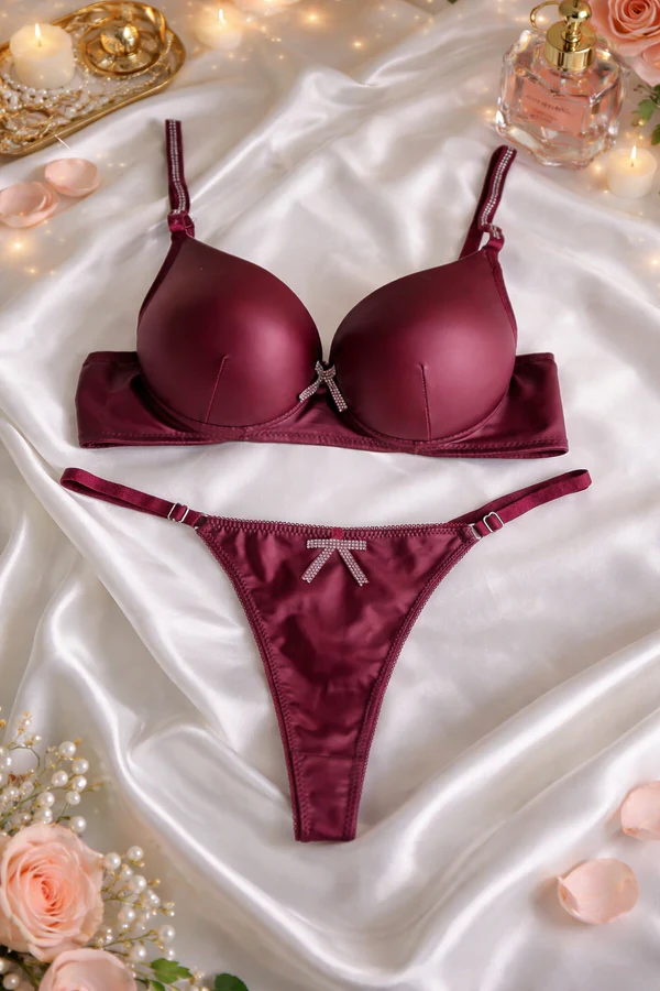 Zarif tasarımı ve şık detaylarıyla öne çıkan bu sütyen külot takımı, hem estetik görünüm hem de konfor sunar. Push-up özellikli sütyeni göğüsleri daha dolgun ve toparlayıcı bir şekilde desteklerken, parlak kumaş yapısı ve taş detaylı kurdele süslemeleri ürüne zarif bir dokunuş katar. Uyumlu külot ise vücuda rahat oturan yapısı sayesinde gün boyu konfor sağlar. Günlük kullanımda veya özel anlarda şıklığınızı tamamlayacak ideal bir iç giyim takımıdır.